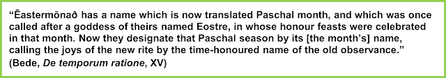 There is a problem, however, as Tim O’Neill points out: “…we have no other explicit references to this “Eostre” anywhere in any other source, which has led some scholars to suspect there was no such goddess and to posit that Bede didn’t have a clue what “Eostremonath” meant and that he simply invented an “Eostre” goddess to explain the obscure name.” More widely, Anglo-Saxon personal names and place names suggest links to a goddess called Eostre so perhaps Bede was correct after all. Maybe the Anglo-Saxons used the name of the goddess’ month, Ēastermōnað, for the new Christian festival since it fell around the same time of year.